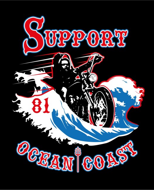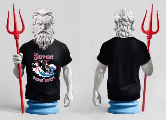 TEE SHIRT NOIR SUPPORT OCEAN COAST VAGUE IMPRIME DEVANT