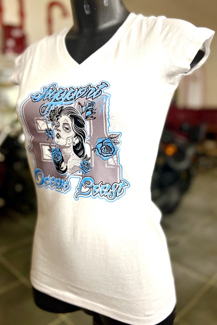 TEE SHIRT FEMME SUPPORT OCEAN COAST BLANC BLEU