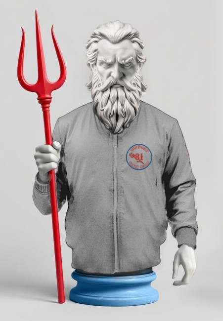 Sweat shirt sans capuche, zippé, floqué devant, dos et manche droite